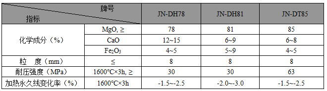 · JN系列電爐底干式搗打料主要理化指標(biāo) ·