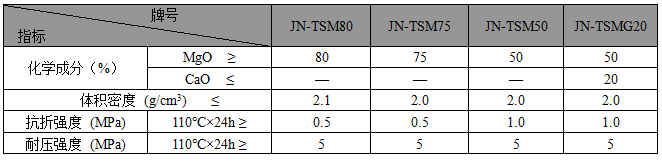 ·JN系列中間包涂抹料主要理化指標(biāo)·